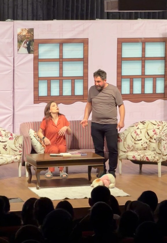 Akşam saatlerinde ise yetişkinler için hazırlanan “Aramızdaki Duvarlar” oyunu sahnelendi. Aile olmanın önemi, evlilik birliği ve doğru iletişim konularına yer verilen oyun, seyircilerden yoğun beğeni topladı. Seyircilere hem duygusal anlar yaşatan hem de düşündürücü mesajlar veren ‘Aramızdaki Duvarlar’ oyunu salonu dolduran tiyatroseverler tarafından büyük alkış aldı.