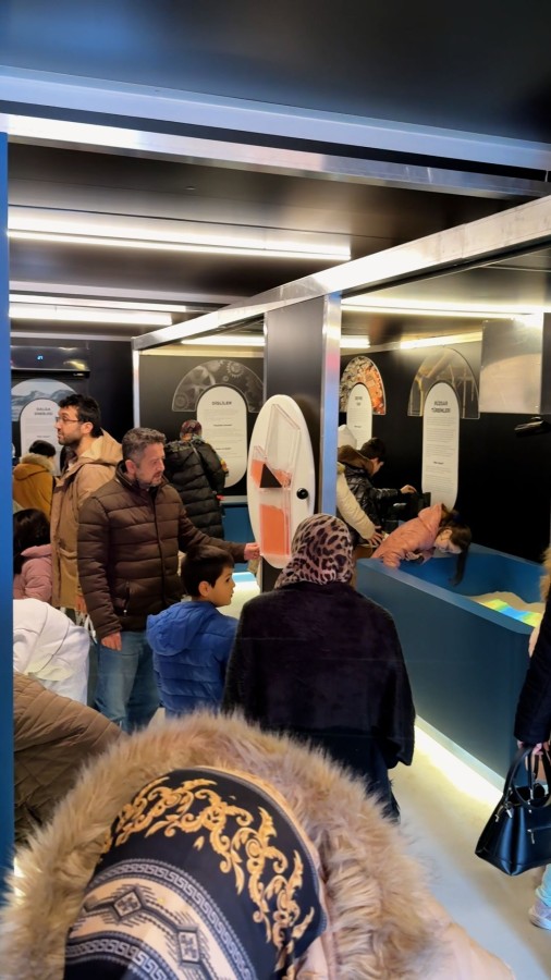 Yoğun katılımın yaşandığı Bilim tırında, çocukların yanı sıra aileler de bilimsel çalışmaları yakından inceleme fırsatı buluyor.